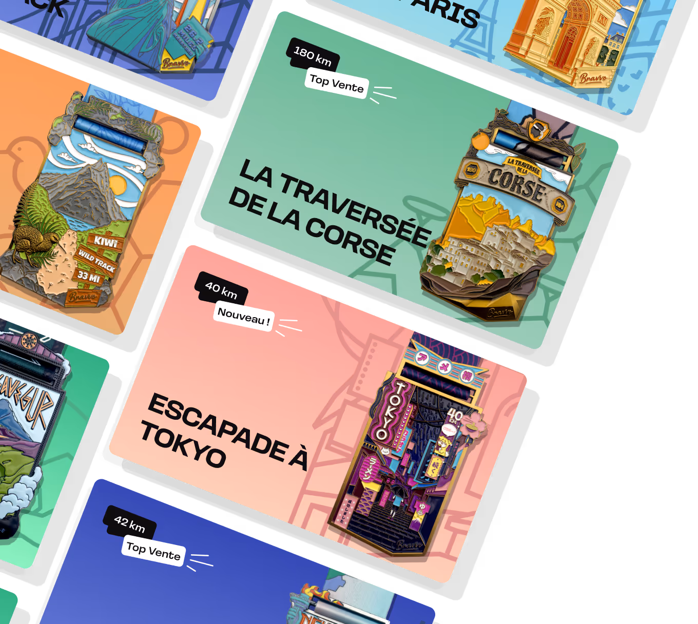 Bravvo est une plateforme de défis virtuels qui vous motive à bouger au quotidien. Que vous marchiez, couriez, pédaliez ou pratiquiez toute autre activité physique, vous pouvez suivre votre progression sur notre application mobile (iOS et Android), relever des défis à votre rythme et gagner de vraies médailles pour chaque défi terminé. Bravvo transforme chaque effort en expérience ludique et gratifiante, où que vous soyez.